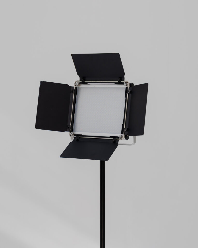 OHM Espacio cuenta con equipamiento profesional de iluminación y producción audiovisual preparado para sesiones fotográficas, rodajes y generación de contenido en Madrid.
